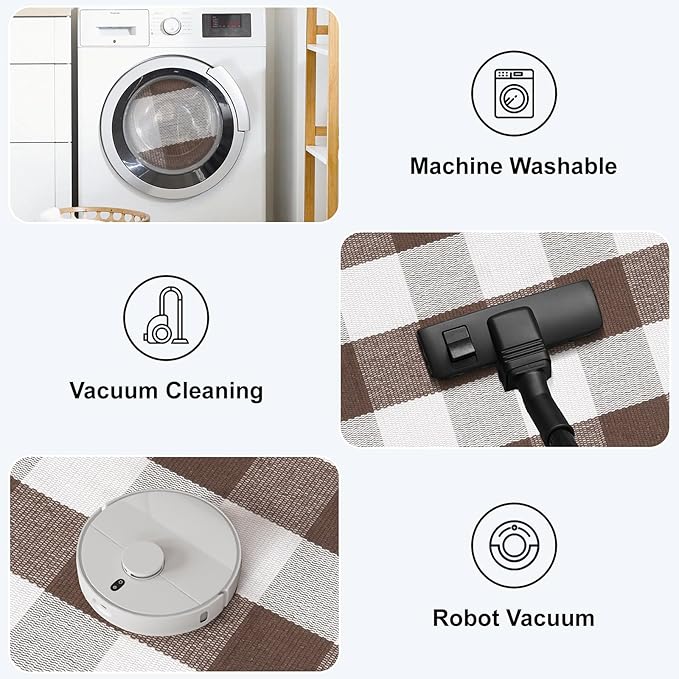 - Classic Buffalo Plaid Pattern: Classical brown and white plaid style,spruce up your indoor and outdoor setting, for a modern and welcoming look that ties any space together.Chic and trendy look rug is the perfect way to elevate your farmhouse décor.Different woven Pattern color on both side,it will be a great choose,achieves the use of 2 rug reversible use.