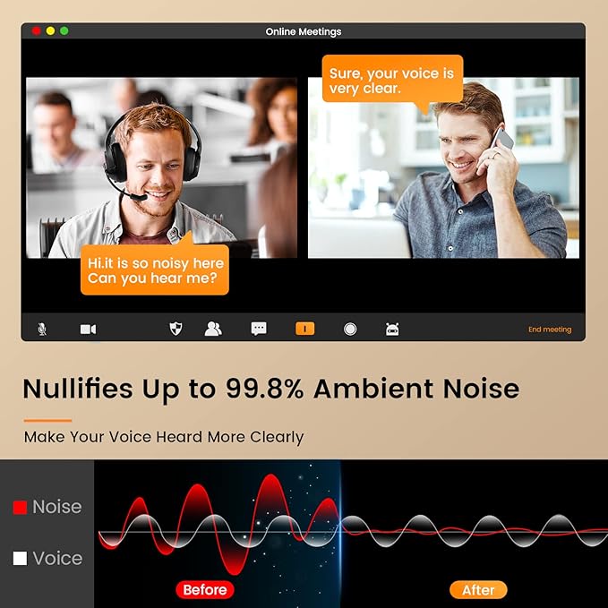 - Easy to Use: With a 120° rotatable noise cancelling microphone, you can move it up and down to quickly switch to mute mode. The headphones have volume buttons and a red indicator light so you can adjust the volume during meetings and let others know you're busy to avoid interruptions.