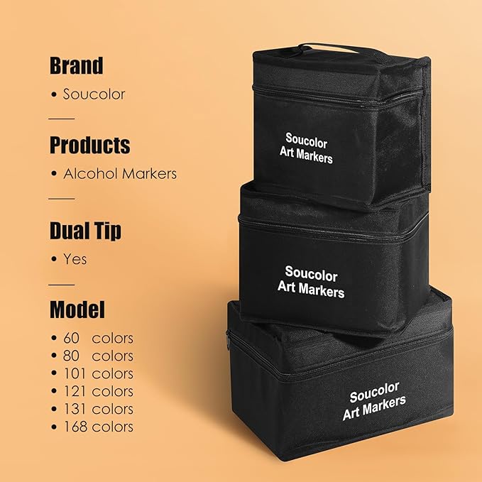 Soucolor Alcohol Markers, 80 Colors Dual Brush Tip Permanent Art Coloring Marker for Book Painting Card Making, Art Supplies Gift Box for Adults Teens Kids Boys Girls 8-12