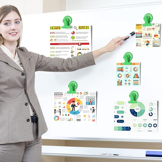- 【Strong Magnetism】Magnet clips heavy duty can hold over 25 sheets of A4 paper on a metal surface without sliding.
