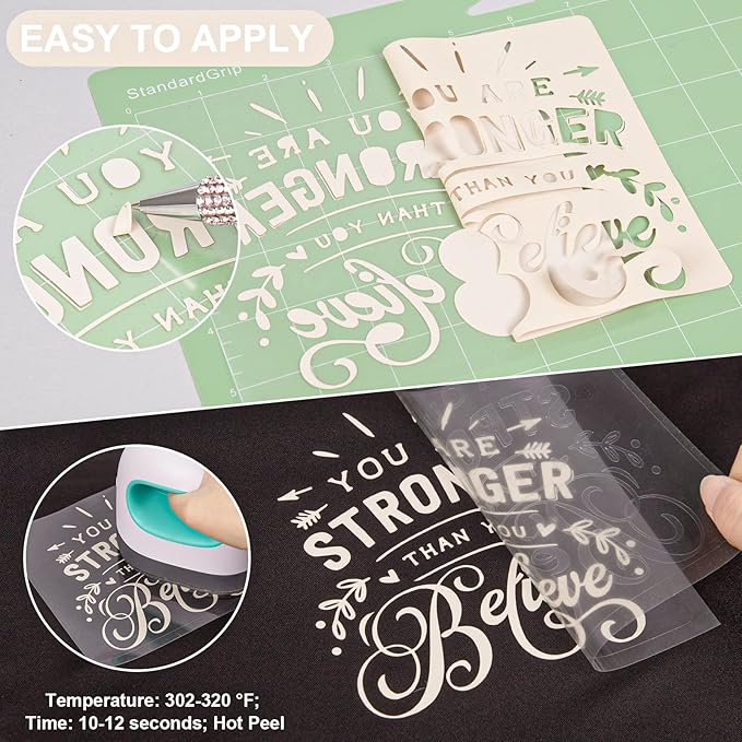 - ✂️EASY TO APPLY: Just use craft cutter and a home iron to get the job done. Apply for approximately 10-12 seconds at 302-320 °F (150-160 °C) and about 10 LBS of pressure. Be sure to cold peel.