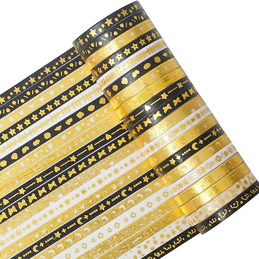 - DESIGN: This adorable washi tape with gold will let your creativity shine. It printed different lovely pattern with fashion design.If you follow crafting trends and have a wild imagination, this tape will be best choice