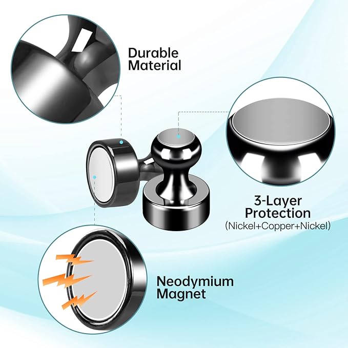 - 🌈【STURDY & DURABLE】Refrigerator magnets strong are nice quality due to being metal, plated with 3 layers of 3-layer protection(black paint+nickel+copper), the bottom is a neodymium magnet, which greatly protects strong refrigerator magnets from corrosion. Very durable and worth the price.