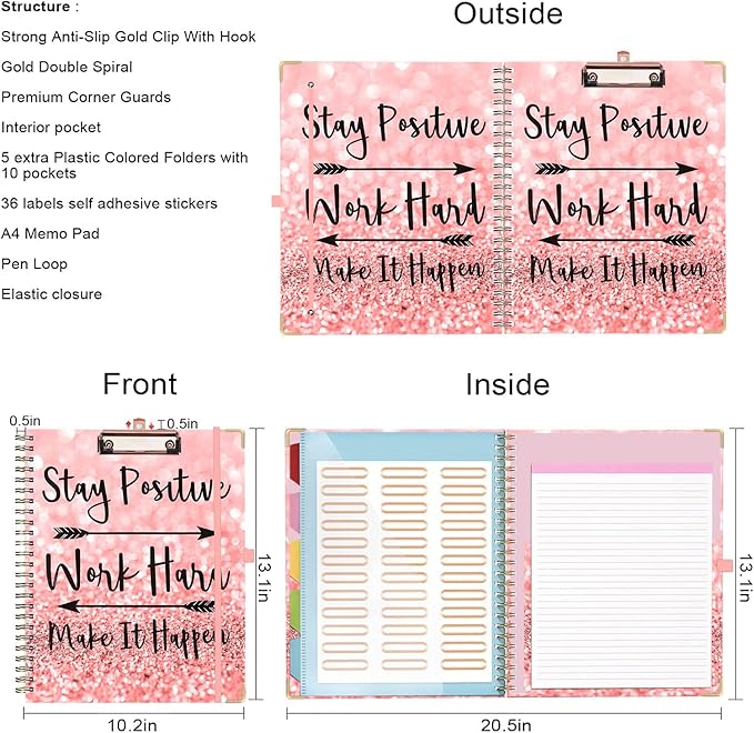 - 【Organize Your Life】This Clipboard with storage can be useful in many upsets, help you organize your time, plan your life, improve your quality of life, improve work efficiency. This clipboard notebook folder combo also suitable for office, students, teachers, nurses, school, and families. You can use it as a Christmas, birthday, Thanksgiving, New Year gift to your friends, children, parents, and lovers.