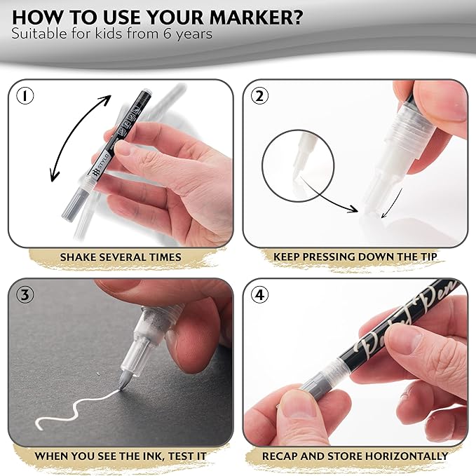 - VERSATILITY – 4 x Silver marker mettalic pen suitable to work on wood, fabric, glass, ceramic, stones and other surfaces