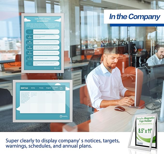 - ✔【Magnetic Frame is Easy to Replace】The VAIIGO acrylic wall sign holder is equipped with strong magnetic stripe border, making it easy for you to insert or replace paper, while firmly locking the paper to prevent it from falling off. Suitable for 8.5"x11" posters, photos, menus, flyers, documents, notices, and more.