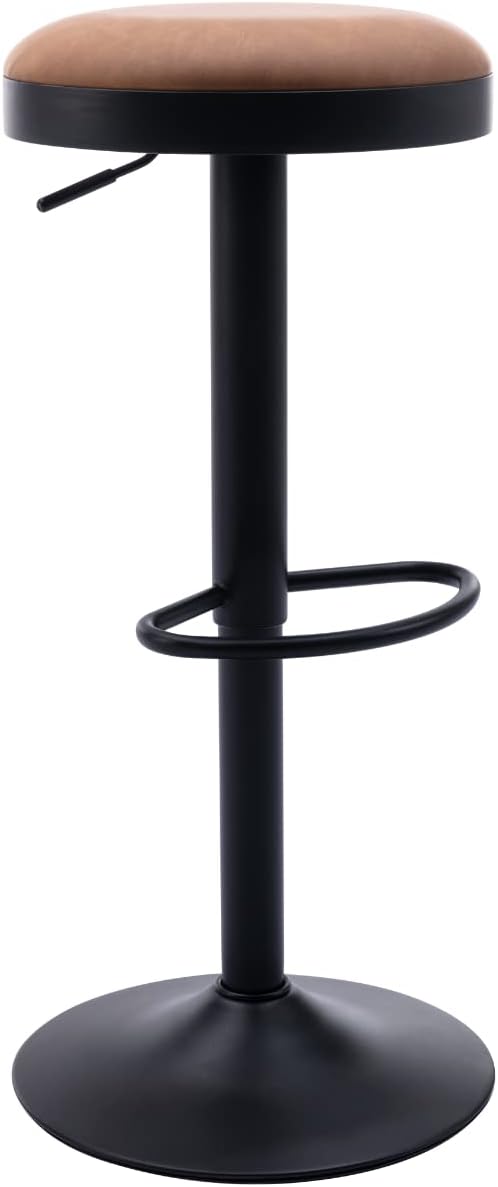 Round Swivel Counter Height Bar Stools Set of 1 Modern Adjustable Barstools Backless PU Leather Bar Chairs Industrial Island Chairs with Metal Base/Footrest for Kitchen Island/Pub/Bar, Brown