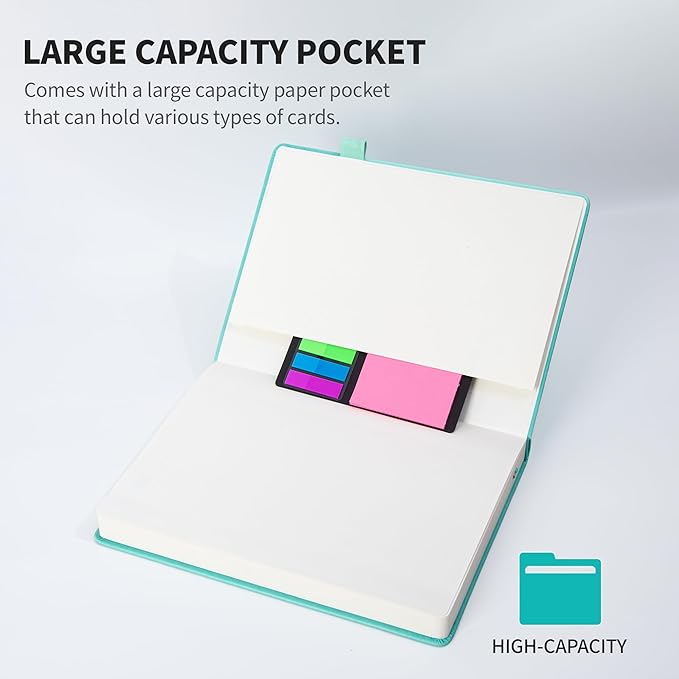 - 🌈【Multifunctional Accessories】⭐This classic 5.6" x 8" vegan leather journal features a durable and water-resistant cover, 320 college ruled lined pages, inner expandable pocket, pen holder, ribbon bookmark & elastic closure band