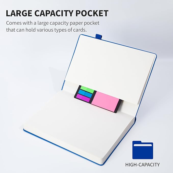 - 🌈【Multifunctional Accessories】⭐This classic 5.6" x 8" vegan leather journal features a durable and water-resistant cover, 320 college ruled lined pages, inner expandable pocket, pen holder, ribbon bookmark & elastic closure band