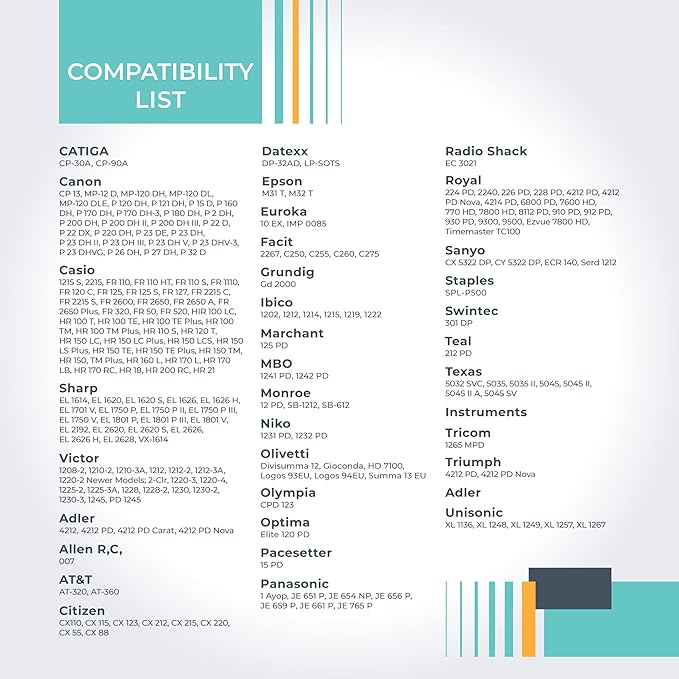 - Fits popular caclulators including Sharp EL-1750V, EL-1801V, and more, Casio HR-170RC Plus, HR-300RC, HR-200RC, HR-100TM, HR-150TM, and more, Canon P23-DH V, P23-DHV-3, P170-DH3, and more, Catiga CP30A, CP90A