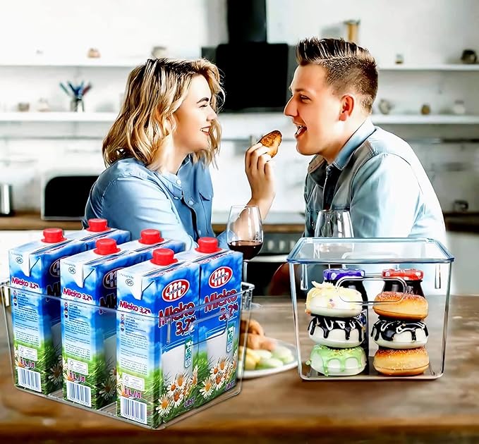 - 【CLEAR DESIGN】 - The plastic transparent design bins allows you to find what you need easily and quickly, saving a lot of searching time and keeping things tidy. These clear fridge storage bins can be used in refrigerators, cabinets, pantries, bathrooms, bedrooms, offices, drawers, playrooms, kitchens and vanities, etc.