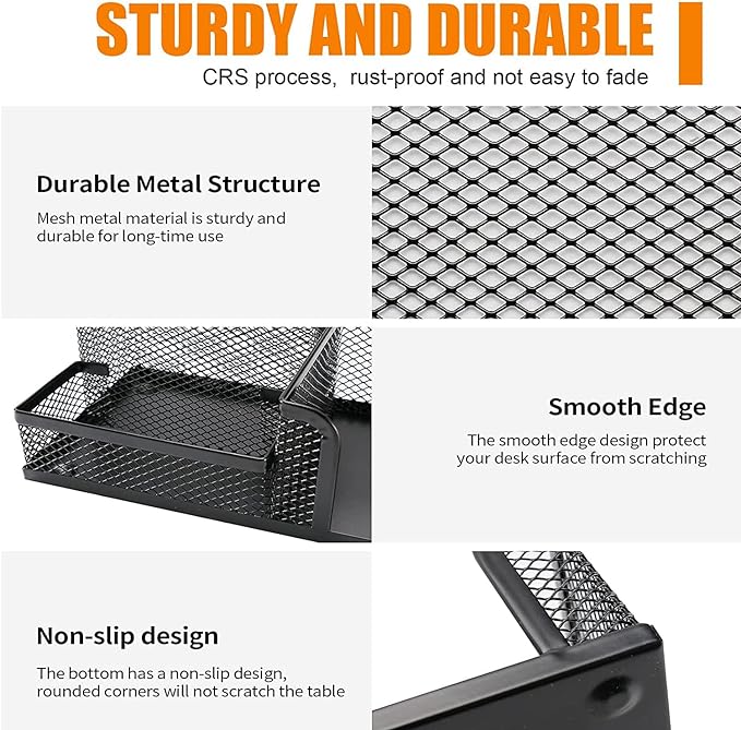 - Made of industrial mesh metal material, this desk pen holder caddy features robust construction, and black steel wire construction makes an elegant and stylish appearance, durable for lifetime use.