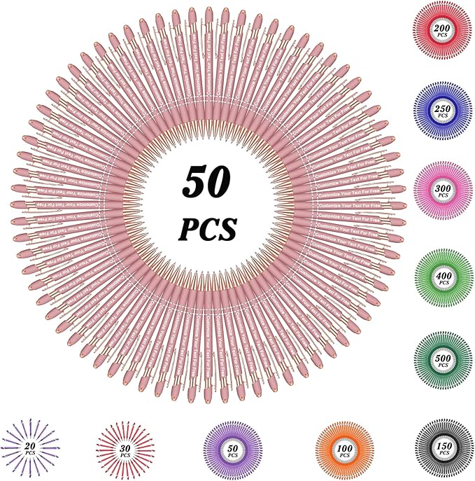 - β Custom Pens Bulk: We provide 50+/100+/150+/250+/300+/400+/500 pcs pens for you to customize. You can leave any text you need on the pen, and we will engrave it perfectly on each pen. These multi-colored pens with perfect craftsmanship will be the best choice for parties, conferences, trades, companies, churches, etc.