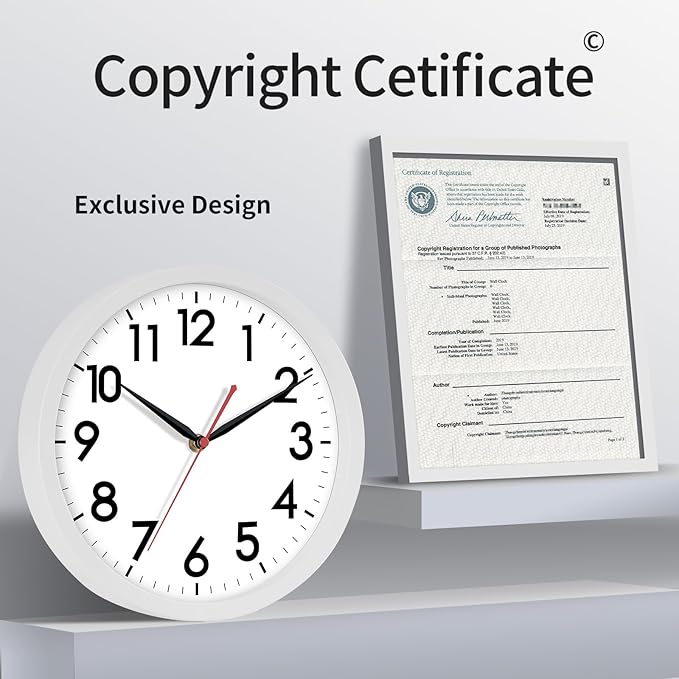 AKCISOT 12 Inch Wall Clock Silent Non Ticking Modern Wall Clocks Battery Operated, Analog Classic Clock Decorative for Bedroom, Kitchen, Home Office, Bathroom, School, Living Room (White)