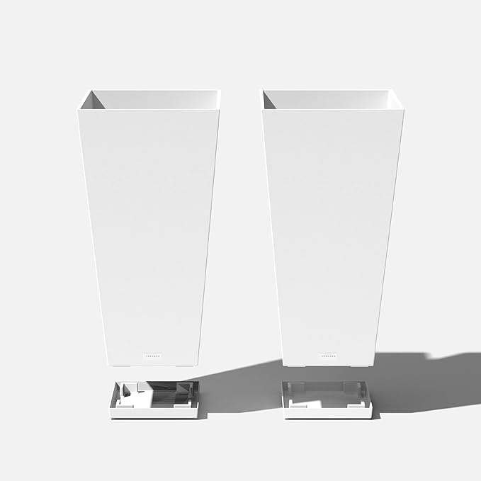 Veradek V-Resin Indoor/Outdoor Taper Planter (White, 30 inch - 2 Pack with 2 Saucer Trays)