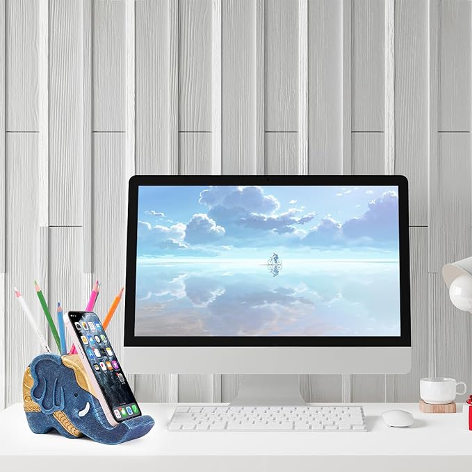 - Multi-Functional: Our desk organizer can be used as cell phone stand, pencil holder, desk decorations and makeup holder. The elephant trunk holds a cellphone and the compartment holds pencils, scissor, paint brushes, etc.
