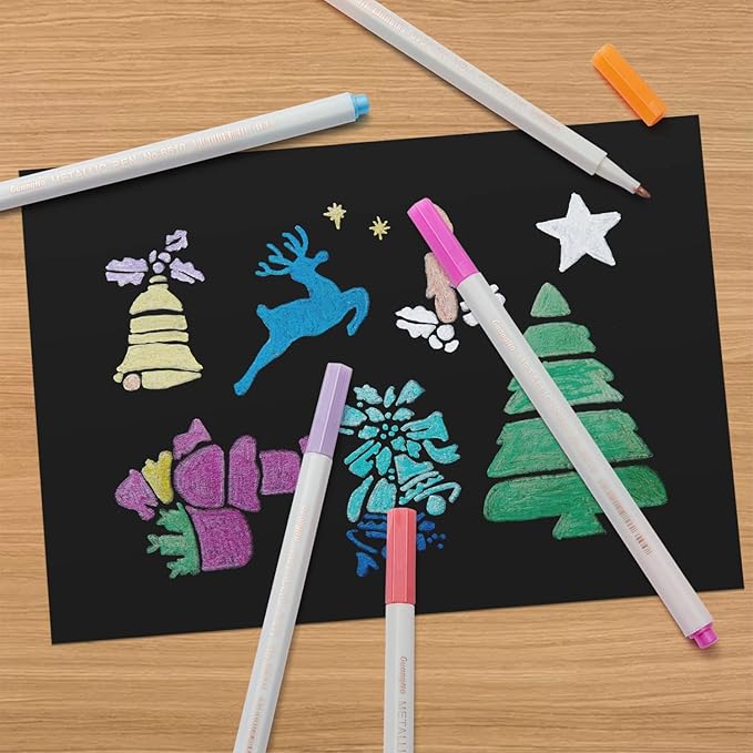 - Premium Quality - Fine metallic markers are made with water-based, opaque metallic ink. The ink is acid-free, environmentally friendly, and non-toxic. The pen barrels are slender and nice to hold and work with. Great for kids use them.
