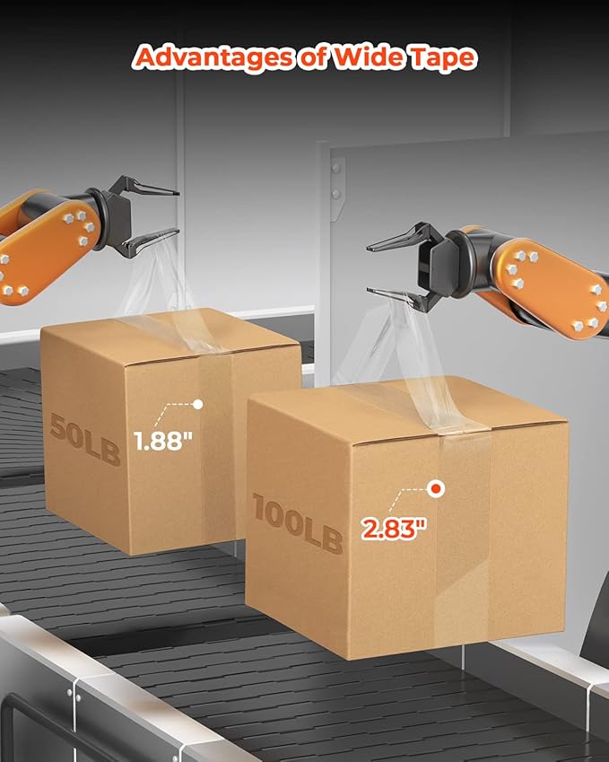 - Load up 50lb, Without Fracture: Our 2.7mil tape is designed with strong thickness and durability to withstand up to 50lb without breaking. Its resistance to ripping and folding back improves packing efficiency and reduces waste