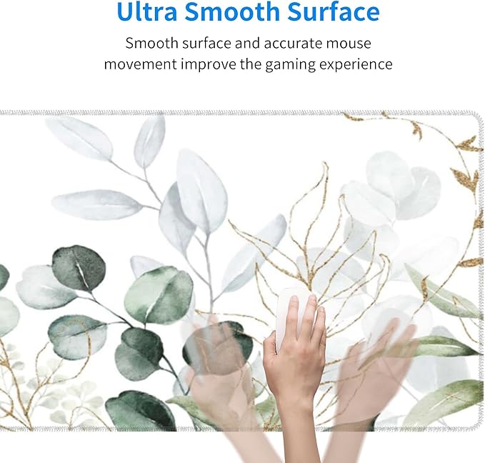 Green Gold Leaves and Branches Extended Big Mouse Pad Large,XL Gaming Mouse Pad Desk Pad,31.5x11.8inch Long Computer Keyboard Mouse Mat Mousepad with 3mm Non-Slip Base for Home Office Work