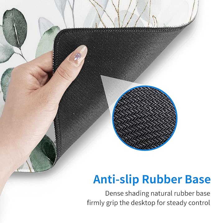 - Non-Slip Rubber Base/Double Stitched Edges - Our mouse and keyboard mat for desk has a natural rubber base that will stay firmly in place for all operations and types of desks. The double stitched edges will prevent it from fraying for the life of it!