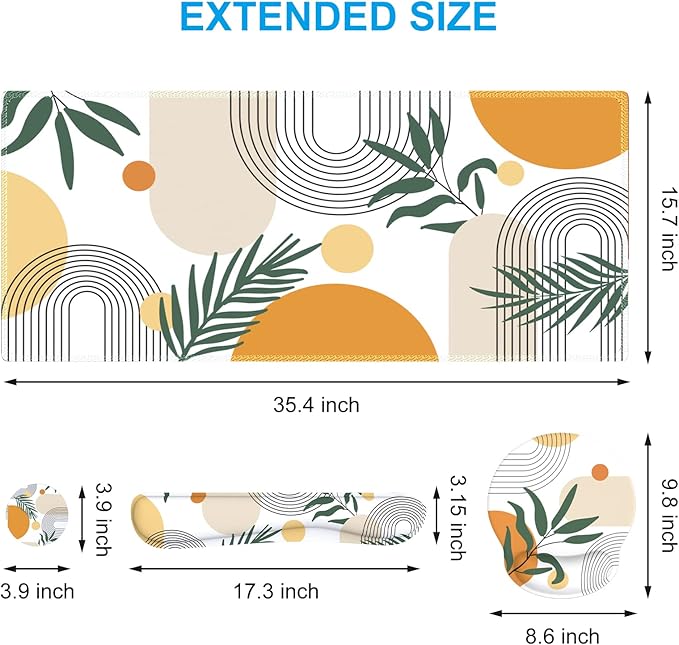 - Large Mouse Pad Size: Extended mouse pad:35.4" x 15.7",wrist rest for computer keyboard:17.32" x 3.15" x 0.98",wrist rest for mouse:8.66" x 9.84" x 0.86",Coaster:3.93" x 3.93"