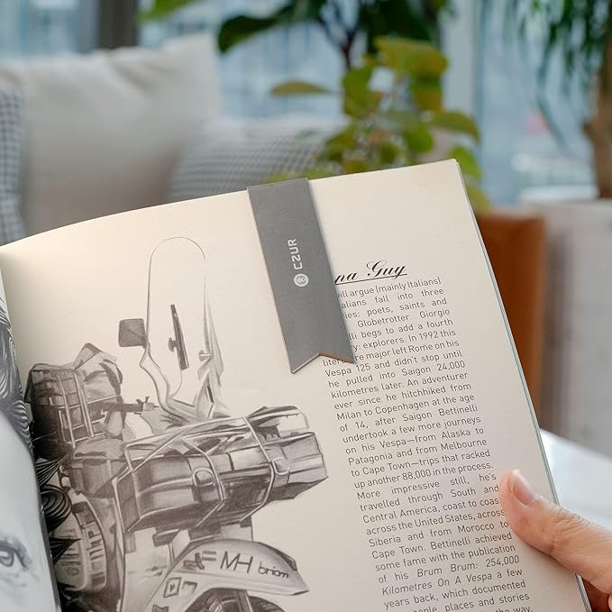 CZUR Metal Bookmark, Stylish Bookmarks, Teacher Valentine Gift, Unique Gift for Women, Men, Readers, Light&Durable Reward Bookmark with ANODIZING Technology, SuperGrip U-Shape Design-Dark Gray