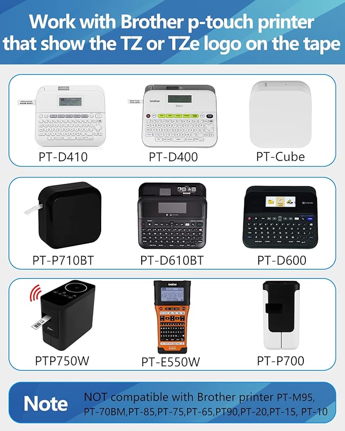 - Compatibility: The TZe-441 label tape is compatible with a wide range of Brother label printer, including the P-touch Cube, PT-D410, PT-D210, PT-D600, PT-D610BT, PT-D200, PT-E550WVP, PT-D400, PT-P750W, PT-P800W and more