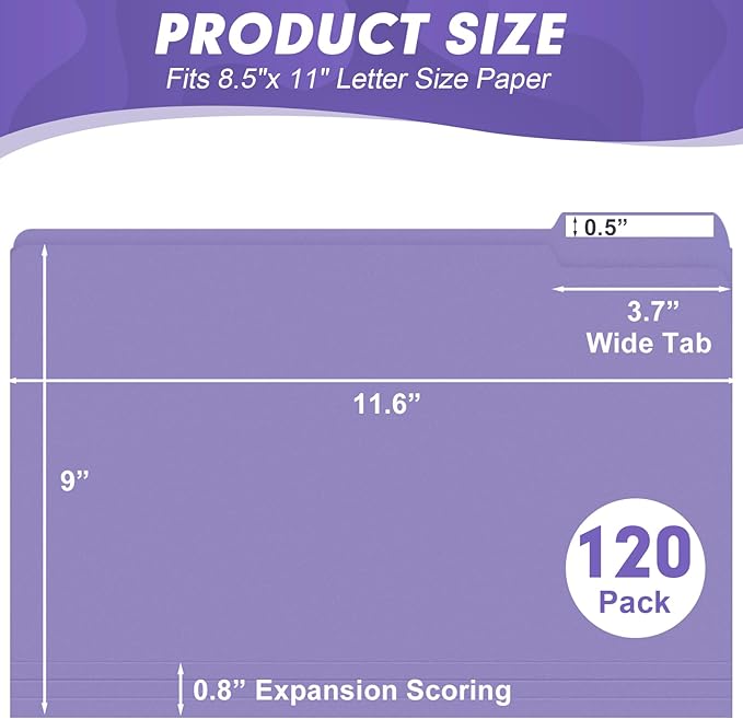 - FILE FOLDERS SET: Contains 120 pack folders in 6 assorted primary colors (cyan, green, purple, rose, gray and blue) to make color-coded filing categories. Organize different types of documents for classification and storage.