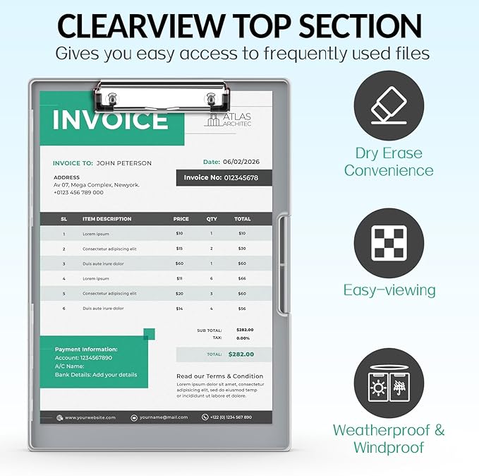 - Dry Erase Top Compartment: The transparent top section is compatible with dry erase markers (not included) and perfect for writing or reusing the same paper. Keeps your rosters and playlists dry and safe even on bad rainy days and gives you easy access to frequently used documents