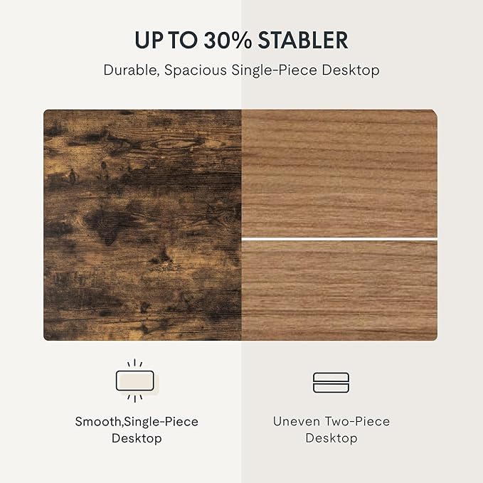 - 1" THICK ONE-PIECE DESKTOP:Experience the elegance of a completely smooth, seamless desktop surface. This design not only enhances the aesthetic but also ensures a sturdier and more stable structure compared to spliced tabletops.