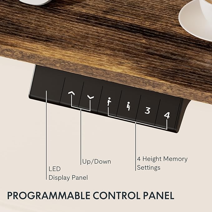 - 4 MEMORY PRESETS: Easily store and recall different height settings with our multifunctional memory system. Effortlessly switch between sitting and standing to reduce the risk of health issues like back and neck pain caused by prolonged sitting.