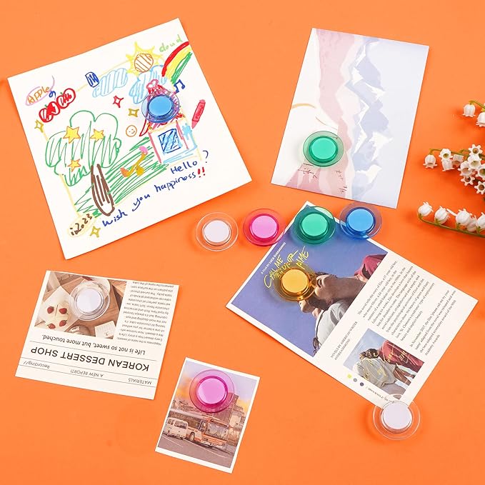 - 【Multi Use】Fridge magnets are versatile and can be used on fridges, dry erase boards, lockers, metal cabinets, washing machines, and more to post lightweight pictures, notes, artwork, shopping lists, calendars, or any papers. These colorful magnets can also be used as markers on whiteboard.