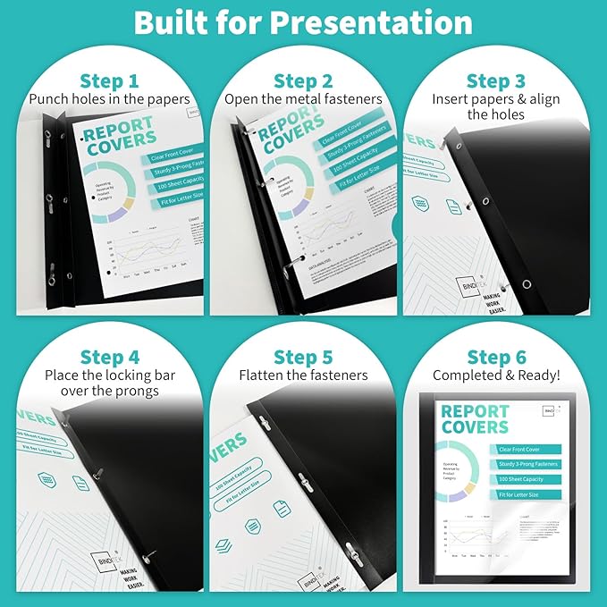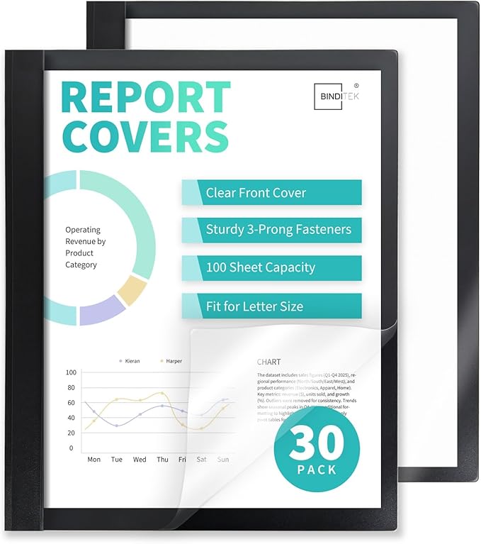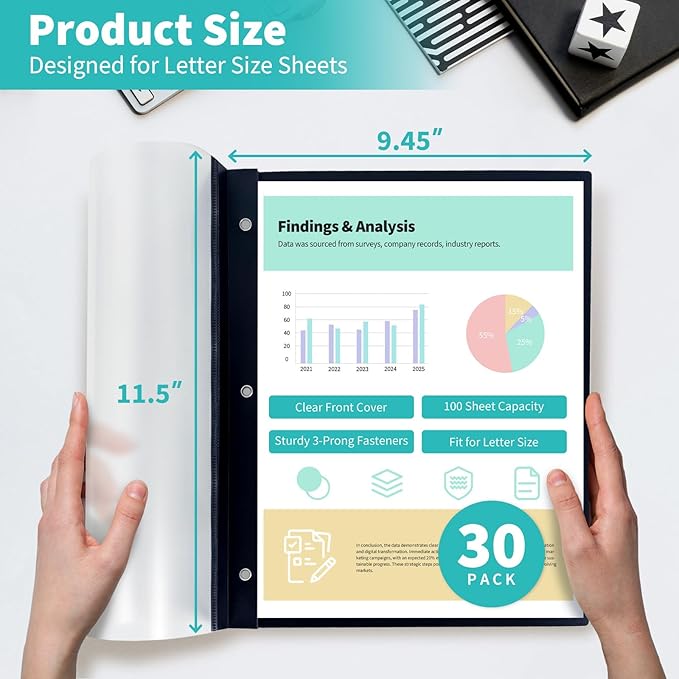 - 【30 Pack for Letter Size】 These report covers with 3 prongs fit 8.5" x 11" documents and come in a reusable 30-pack, ideal for class assignments, business reports, or daily filing. Reinforced construction ensures repeated handling while keeping documents neatly and professionally presented.