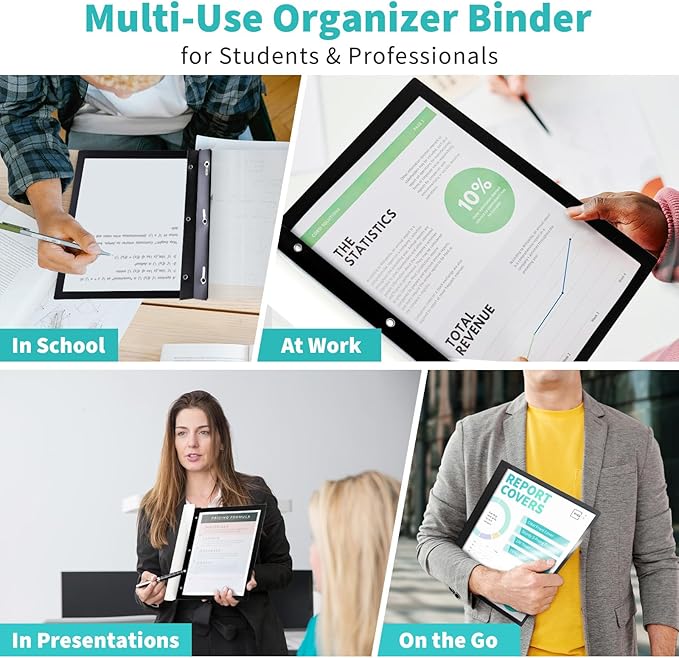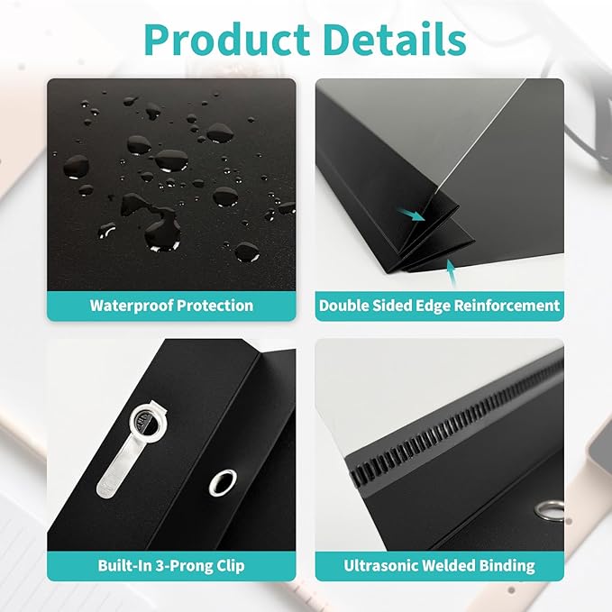 - 【Black Back and Side Covers】 Made from sturdy 16mil (0.4mm) polypropylene with a sand-textured finish, the black back and side panels resist bending and creasing, providing reliable structural support. The smooth, odor-free surface withstands frequent use in academic or professional settings.