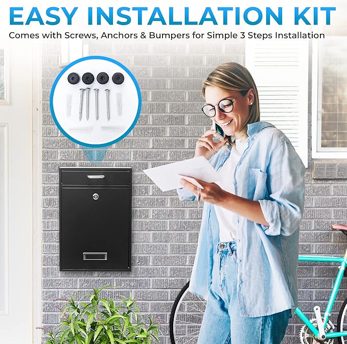 Wall Mounted Locking Vertical Dropbox Mailbox - Safe and Secure (Large) | Made with Galvanized Steel (Light Gray)