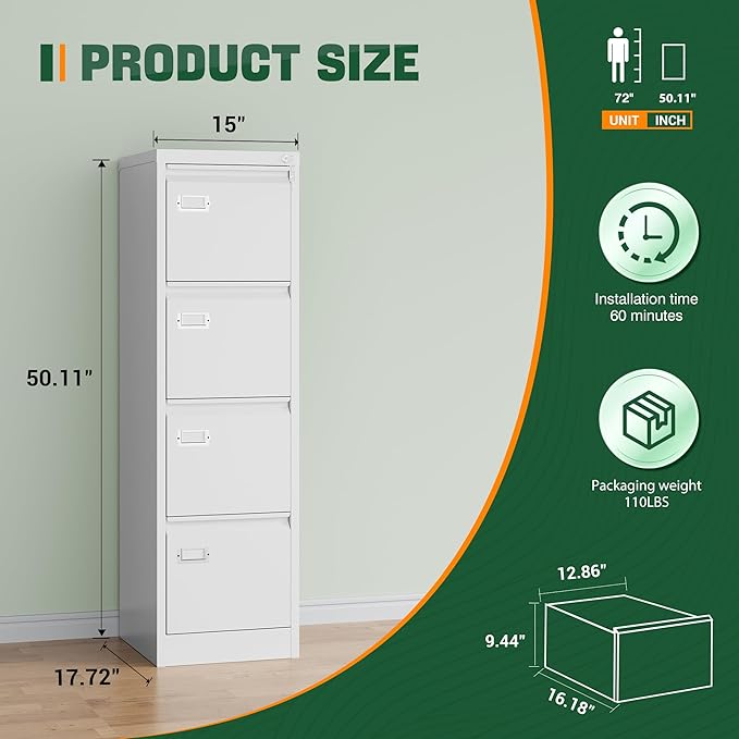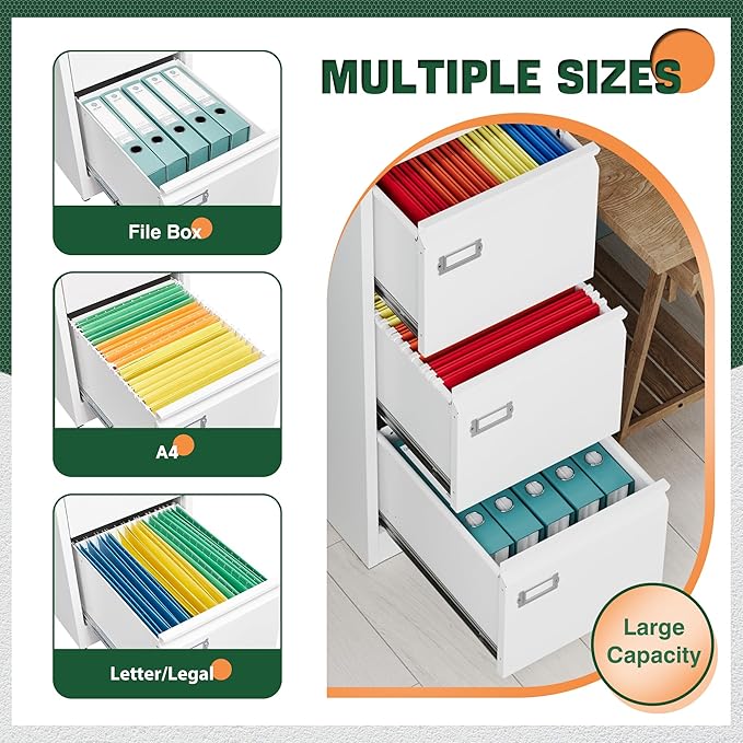 - 〖Document Storage Security〗One key to lock all drawers,each drawer can hang A4/F4/Letter/Legal and other file types;Each drawer can hang at least 150 files,drawer dimensions: 12.86"WX16.18"DX9.44"H.