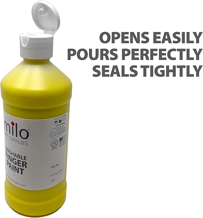 milo Kid's Washable Finger Paint Set of 8 Colors | 16 oz Bottles | Safe and Non-Toxic | Made in the USA | Art & Craft Paints for Kids, Toddlers, Pre School Supplies Painting Set for Children | Easy