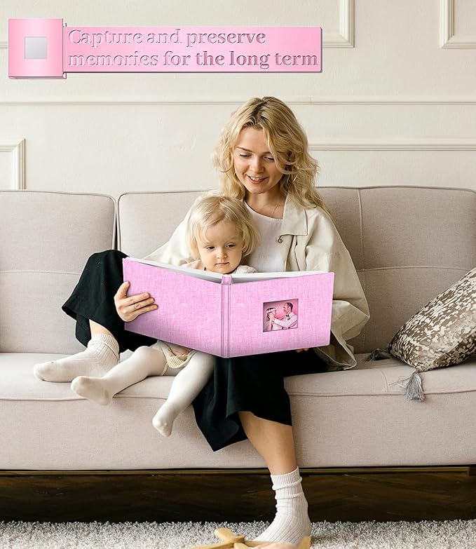- 🥇Unique Cover Window Design: Personalize your album with any photo you desire, using the cover window to establish a theme such as a baby's growth or a family album. The cover window features a protective plastic film, and the upgraded film allows for easier access to your photos.