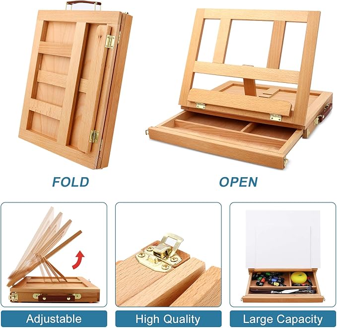 - 【RICH PACKAGE】:The set has 12 PCS brushes,36 color tubes (12ml, 0.4 oz) acrylic paint, an wooden easel with drawer,6 PCS/2 sizes blank drawing boards,12 Page Pad(A4),a plastic palette,a wooden palette, 2 sizes paint knives, a brush cup,2 PCS art sponges and a gift box.