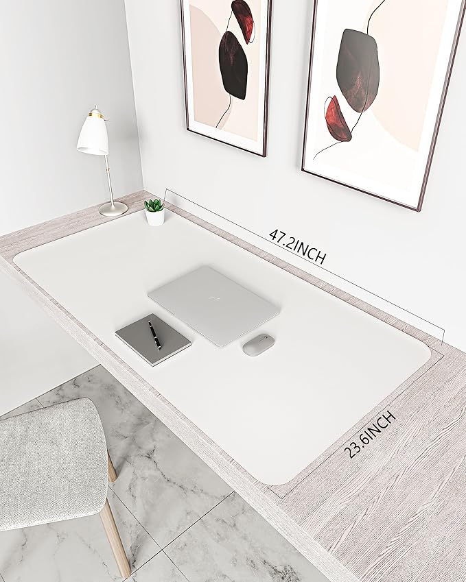 YSAGi Non-Slip Leather Desk Pad XL Size, Waterproof Laptop Computer Desk Keyboard Mat, Table Protector Blotter Mat, Large Mouse Pad for Office/Work/Home/Decor(White, 47.2" x 23.6")-No Band