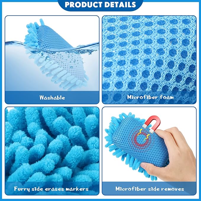 - Reliable and Safe: our whiteboard eraser magnetic are made of quality microfiber, foam and magnets, which are skin friendly and easy to attach to the whiteboard, blackboard and chalkboard; The magnetic erasers for whiteboard is washable and reusable, you can clean it directly with cleaning solution, soapy water or water