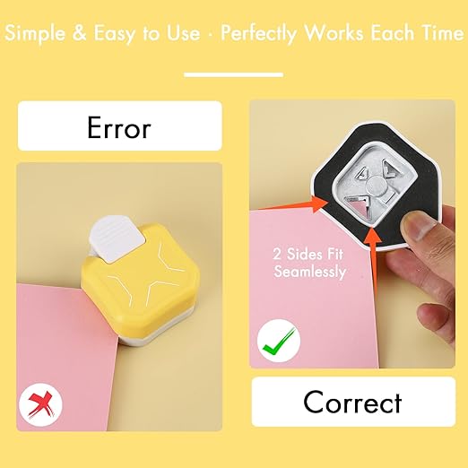 - CRISP CUTS AND EASY TO USE: To use this corner paper punch, push the corner of your paper inside until it’s lodged adequately against the sides, and press the handle down. The corner punch can also be used upside down to view the cutting process better.