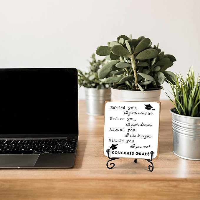 Graduation Decorations, Graduation Gifts for Class of 2026, Inspirational Desk Decor Wood Plaque with Stand, Congrats Grad Gift for Senior College Graduated Women Girl-A31