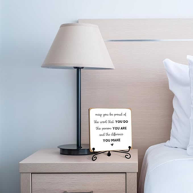 - 『Product Size』: The desk decor wood sign measures 4" x 4" x 0.2". This desk decoration size is suitable for a variety of locations. You can put it on a table like home table centerpieces, in your office, living room, study room, nursery room and bedroom, or you can place it on the table of your wooden house, yard, balcony and garden.
