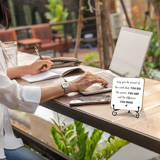 Home Office Desk Decor Wood Plaque with Stand, Coworker Gifts For Women Men Retirement Gifts Going Away Gift Leaving Gifts For Coworker Boss Leader Colleague Friends -A26