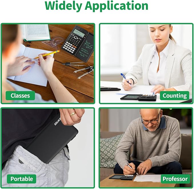 - Convenient Writing Pad: The unique LCD writing pad design allows you to record ideas, formula derivations or important data during the calculation process. No need to prepare additional paper and pen