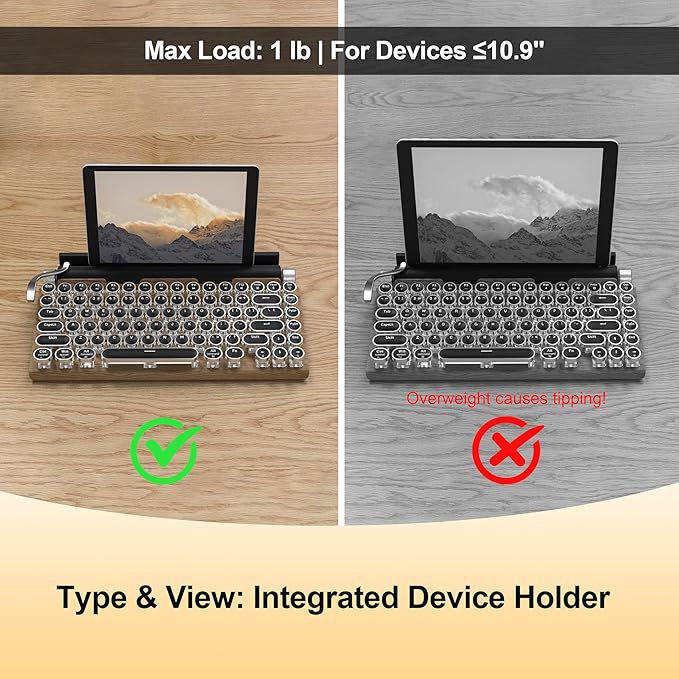 - Compact and Ergonomic Design: Designed to perfection, our typewriter wireless keyboard has an ergonomic build that ensures a comfortable typing experience. Concise design with 83 keys total (no numeric keypad) , the keyboard becomes more versatile and provides additional desk space which can be used more productively