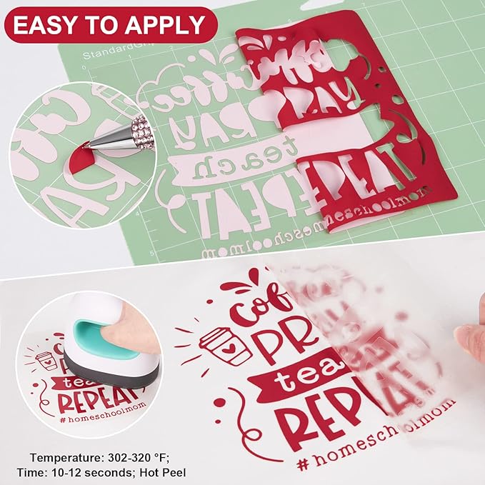 - ✂️EASY TO APPLY: Just use craft cutter and a home iron to get the job done. Apply for approximately 10-12 seconds at 302-320 °F (150-160 °C) and about 10 LBS of pressure. Be sure to cold peel.