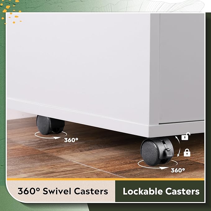 - Easy to Move & Assemble: Comes with 5 swivel wheels, including 2 lockable casters that can be stabilized or moved freely with the braking feature. With detailed instructions and an installation video, you can easily assemble this mobile file cabinet using the tools provided. If you have any questions about it, our professional service team is ready to help.