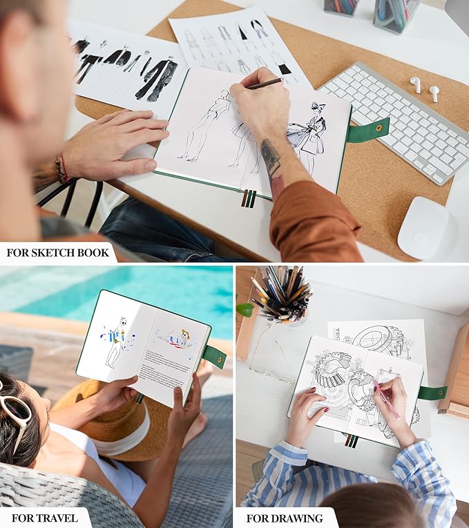 - 【180°LAY FLAT DESIGN】This drawing journal comes with 3 colored ribbon bookmarks, so you can mark your favorite pages with ease. The 180° lay flat design enables you to work on your drawings or writing without any distractions of bent pages. The unlined notebook ensures you have the freedom to sketch and write without any constraints.